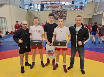 Директор спортивной школы Антон Годинов совместно с победителем Кубка мира по самбо Артушом Асряном наградили Барсукова Александра, Колосовского Дениса и Ахмадова Умара.